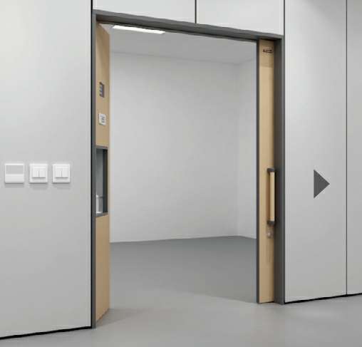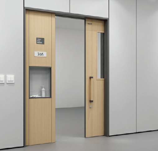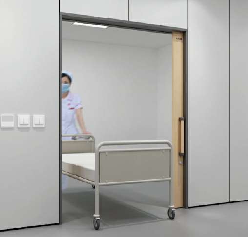 • 平移开启方式减少空间占用,特殊需要时打开子门扇达到更大限度的通行要求子门厚度与墙体同厚,增加视觉整体效果,同时在子门扇表面位置可加入呼叫系统、信息标示系统、消毒液体等,方便患者需要的同时也让医护人员工作更加便利。